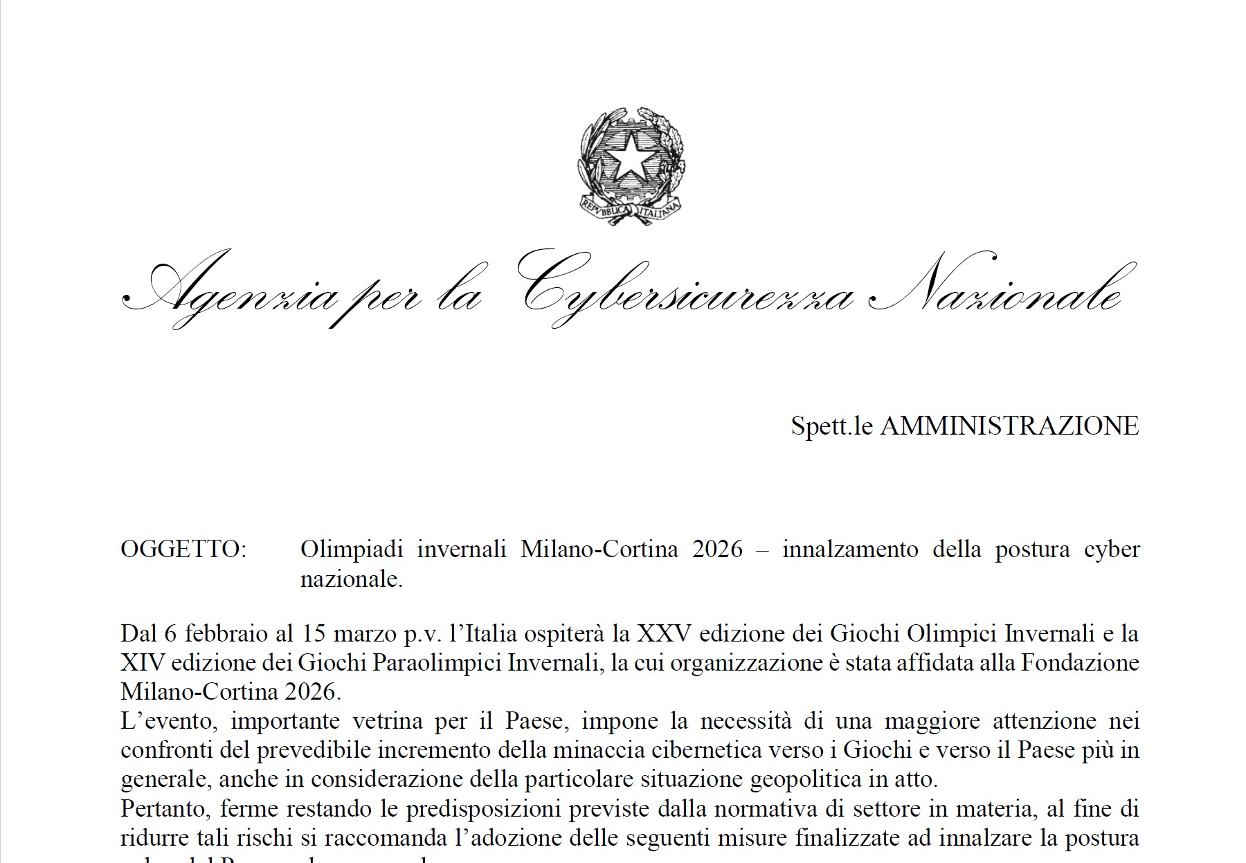 Cybersecurity – Olimpiadi Invernali Milano–Cortina 2026